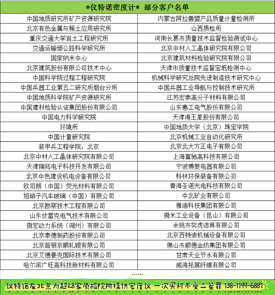 源頭廠家,實(shí)力在我。儀特諾在北京為超28家質(zhì)檢院所、985/211高校提供密度測(cè)試儀器,一輩子的事業(yè),持續(xù)做好產(chǎn)品質(zhì)量與服務(wù),我們一直在路上...歡迎隨時(shí)聯(lián)系,把你的需求告訴儀特諾,為你提供專業(yè)的密度測(cè)量解決方案。